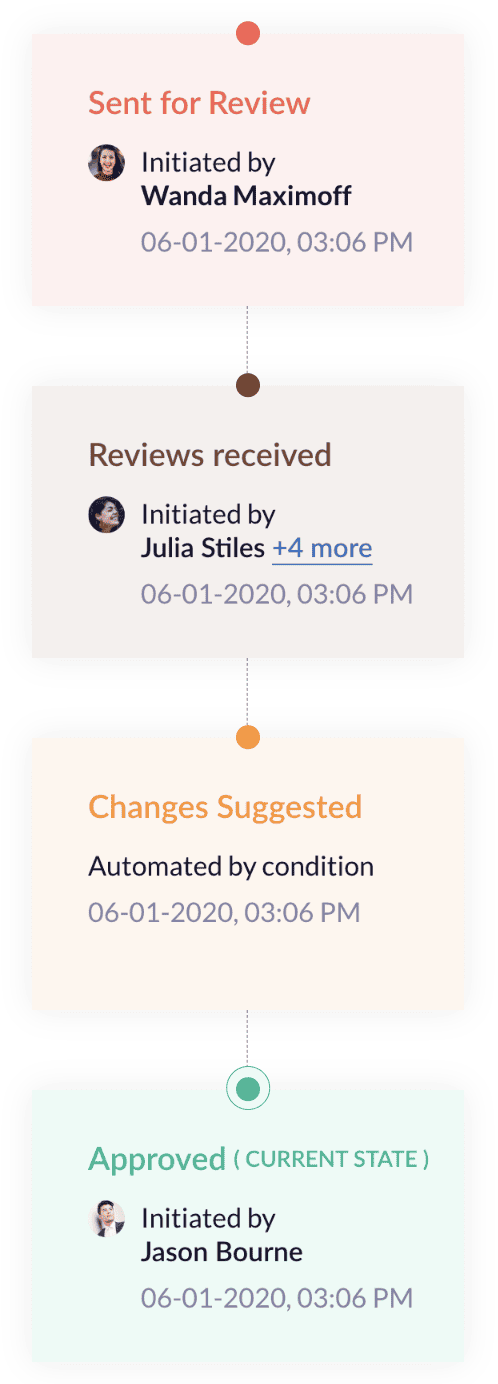 Effortlessly obtain reviews and approvals for your business and process documents in quick succession. Ensure a smooth transition from review to approval stages.
